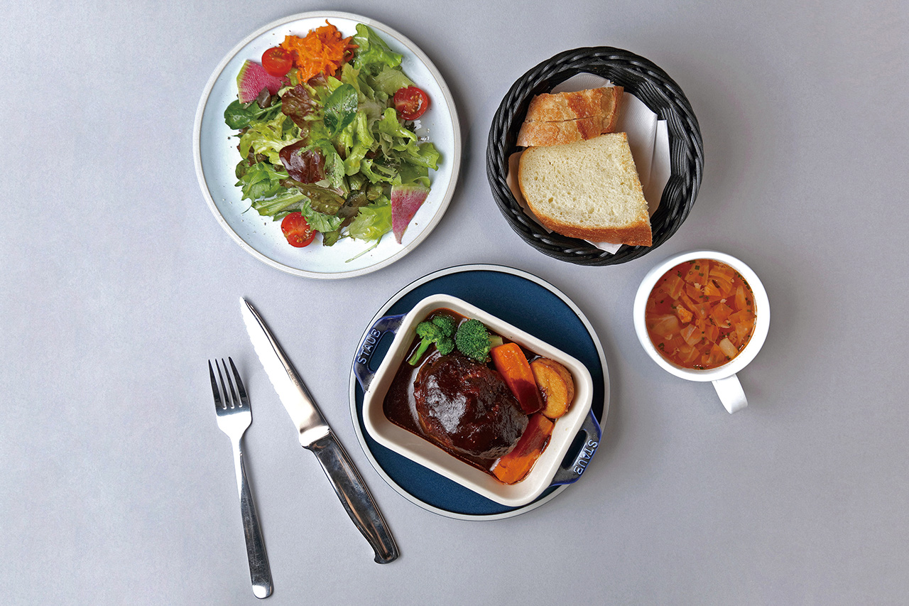 大人から子供まで人気のハンバーグや鮮度にこだわった旬の食材を愉しめるイタリアンやフレンチをベースにした洋食メニューをご用意。